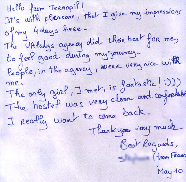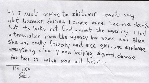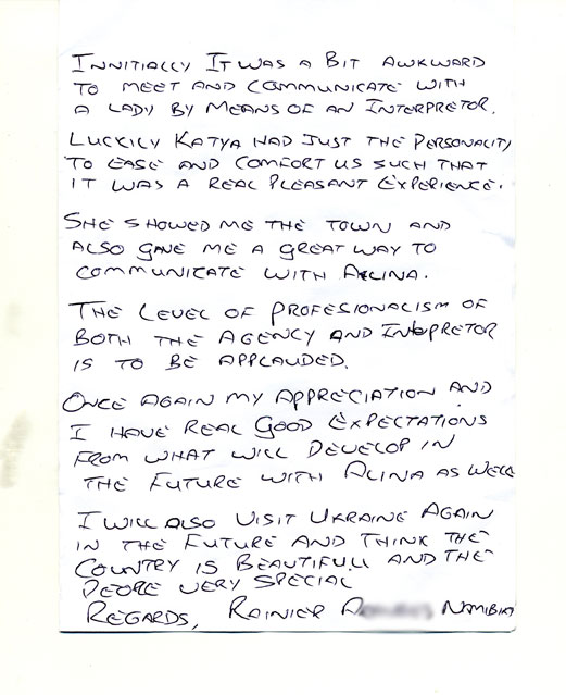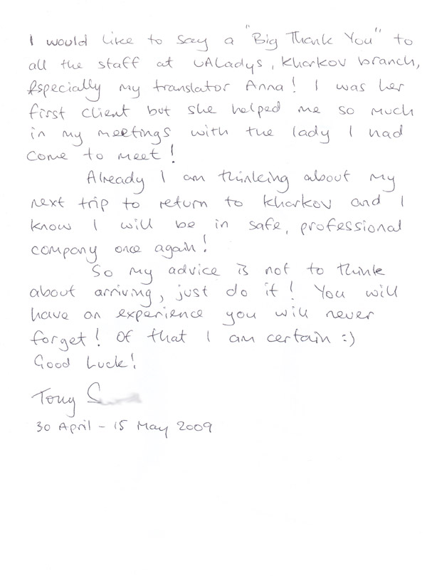 Thanks again to you all at UA Ladies(Zhitomir) and would highly recommend your services to anyone.