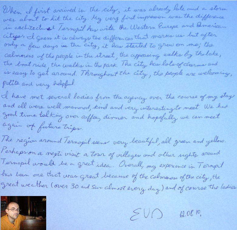Vincent D. from Switzerland, trip to Ternopil,August 2010