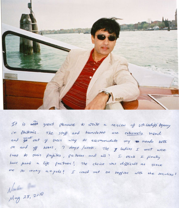 Dear Gentlemen, here we are happy to represent you the Testimonials of the customers who have found their soulmates with the help of the Marriage Making Agency. Here they express their opinion, experience and suggestions for those who are looking for a second half in another country and appreciation to the company and the staff.